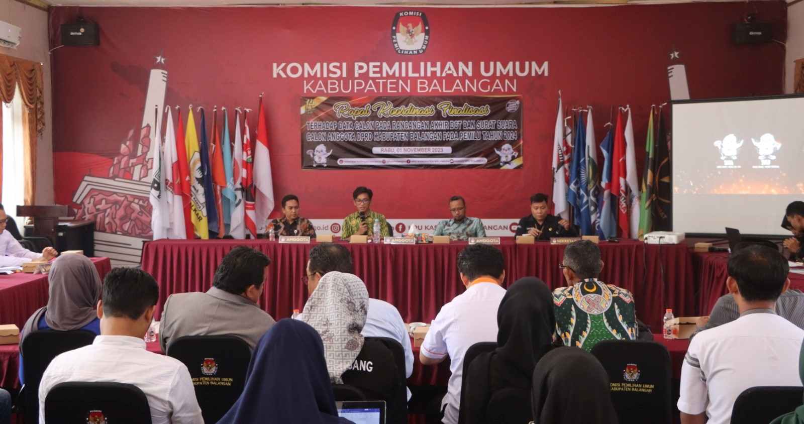 Sebanyak 16 perwakilan Partai dari kabupaten Balangan hadir dalam rapat ini. Mereka melakukan pengecekan langsung terhadap data yang telah mereka serahkan kepada KPU Balangan.