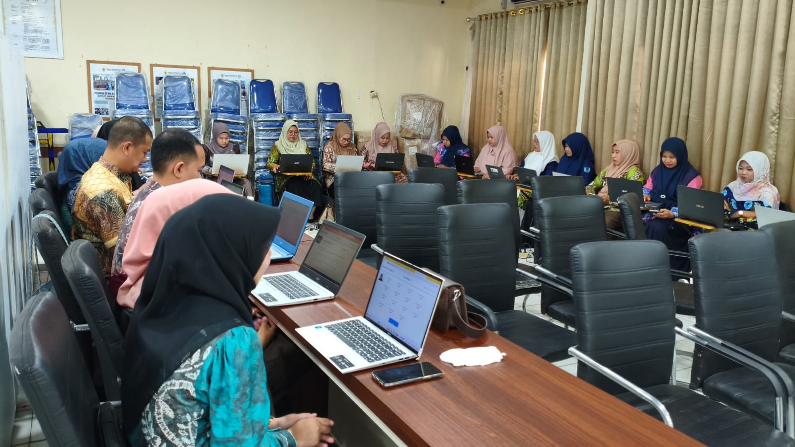 Para peserta terdiri dari Guru, Pengawas, dan Kepala Sekolah saat mengikuti ujian Google Certified Educator Level 1, Kamis (24/7/2025) di Aula H Sibli Imansyah Dinas Pendidikan HST.