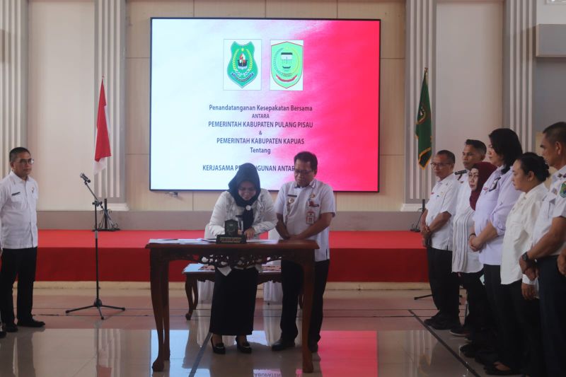 JURNALKALIMANTAN.COM, PULANG PISAU – Penandatanganan nota kesepahaman (MoU) antara Pemerintah Kabupaten Pulang Pisau dengan Pemerintah Kabupaten Kapuas tentang Kerja Sama Pembangunan Antardaerah, berlangsung di Aula Banama Tinggang Kantor Bupati Pulang Pisau, Rabu (3/1/2024).