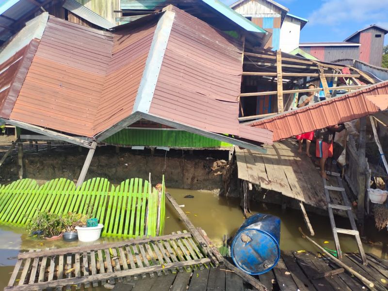 “Tidak hanya itu, fasilitas umum seperti jalan titian sepanjang 70 meter, WC umum, dan penampungan air hujan juga mengalami kerusakan yang cukup parah,” jelas Kepala Desa Jali Rahman via WhatsApp, Senin (14/8/2023).