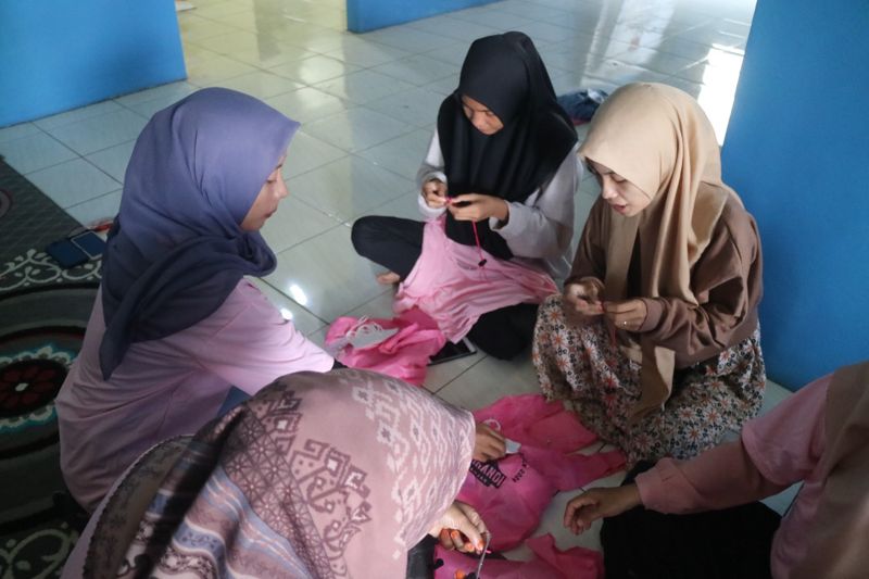 Mereka mengadakan pelatihan membuat konektor masker bagi milenial di Kabupaten Tapin, Provinsi Kalimantan Selatan.