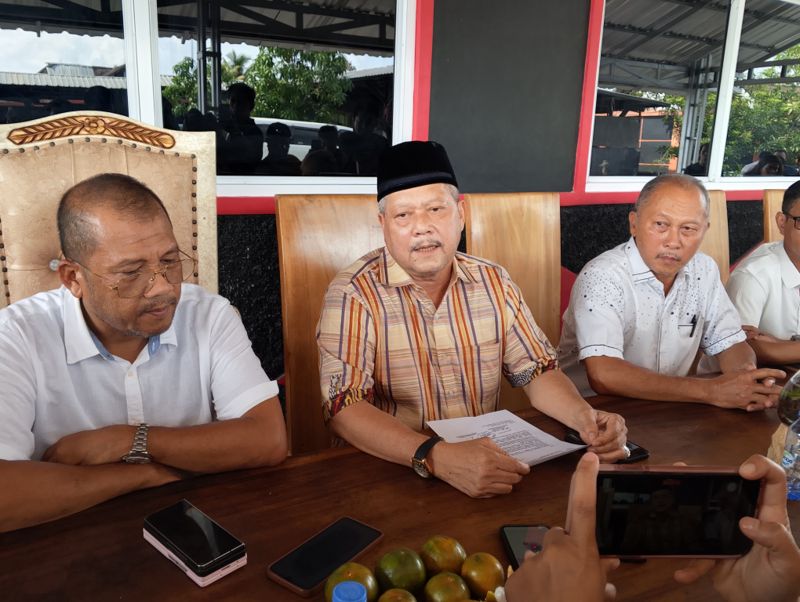 Ketua Tim pemenangan Bambang heri purnama, Gusti Iskandar Sukma Alamsyah (peci hitam) saat jumpa pers dengan wartawan