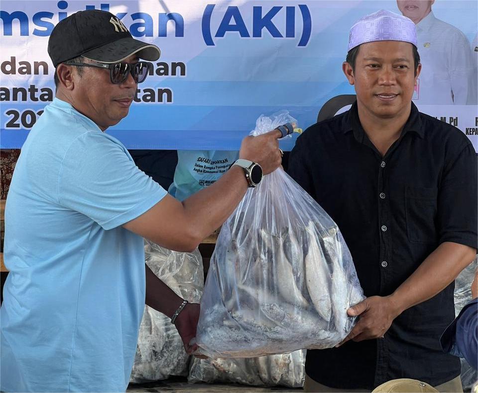 Kepala Dislautkan Prov Kalsel, Rusdi Hartono Saat Menyerahkan Bantuan Berupa Ikan Segar di Desa Paku Alam Kabupaten Banjar, (Foto : Ist)