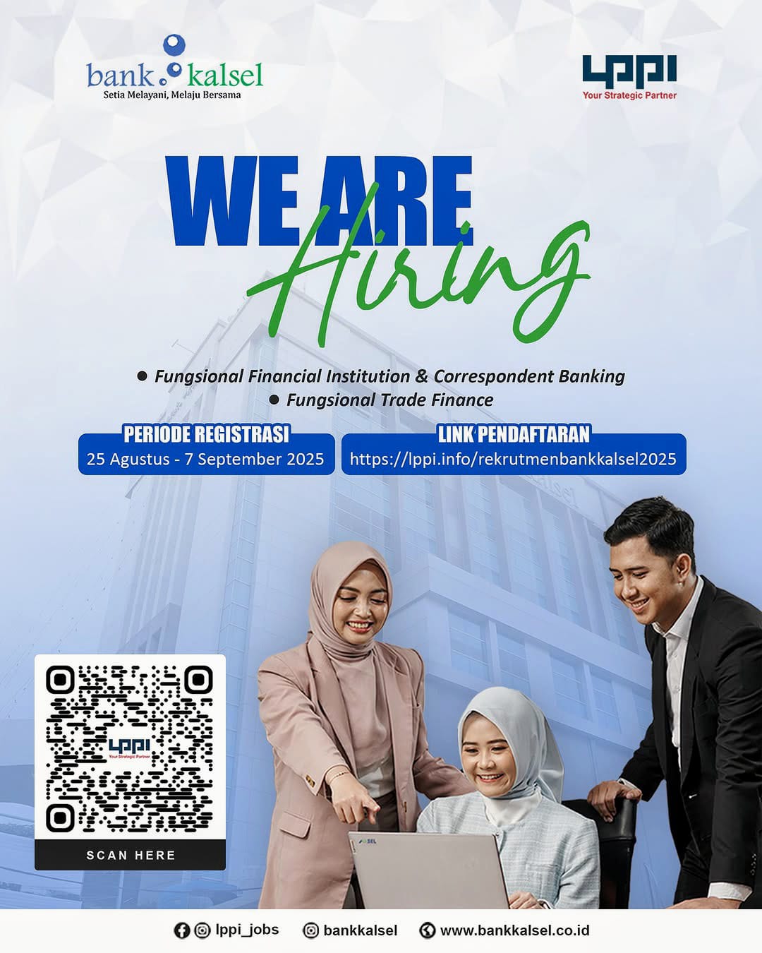Pendaftaran dilakukan secara online melalui : https://lppi.info/rekrutmenbankkalsel2025