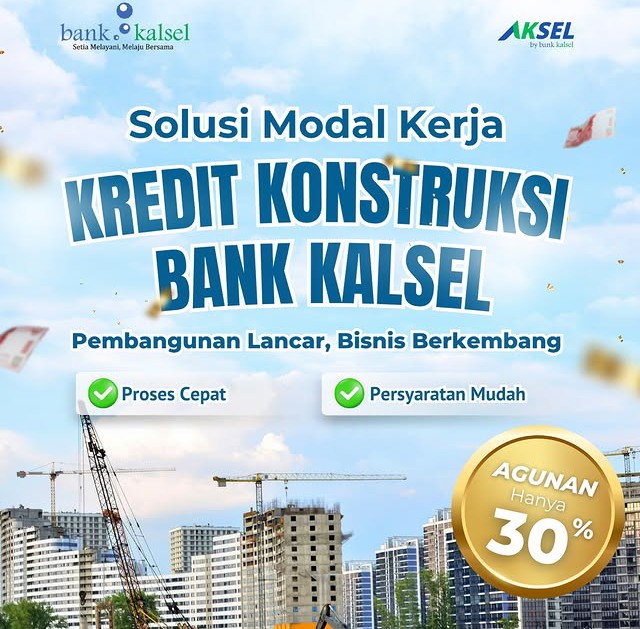 Keunggulan kredit konstruksi Bank Kalsel, proses cepat dan syaratnya pun mudah, agunan hanya 30 persen, pastikan pembangunan lancar, bisnis pun berkembang.