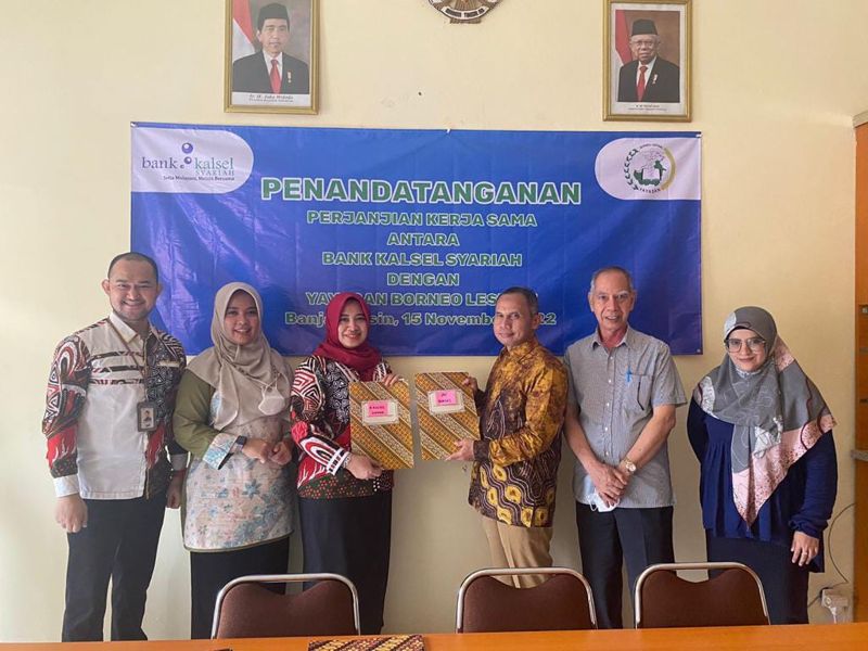 oleh Kepala Bank Kalsel Kantor Cabang Syariah (KCS) Banjarmasin, Yuanita Evayanthi dan Ketua Yayasan Borneo Lestari, Drs. H. Yani, M.Si., Apt.