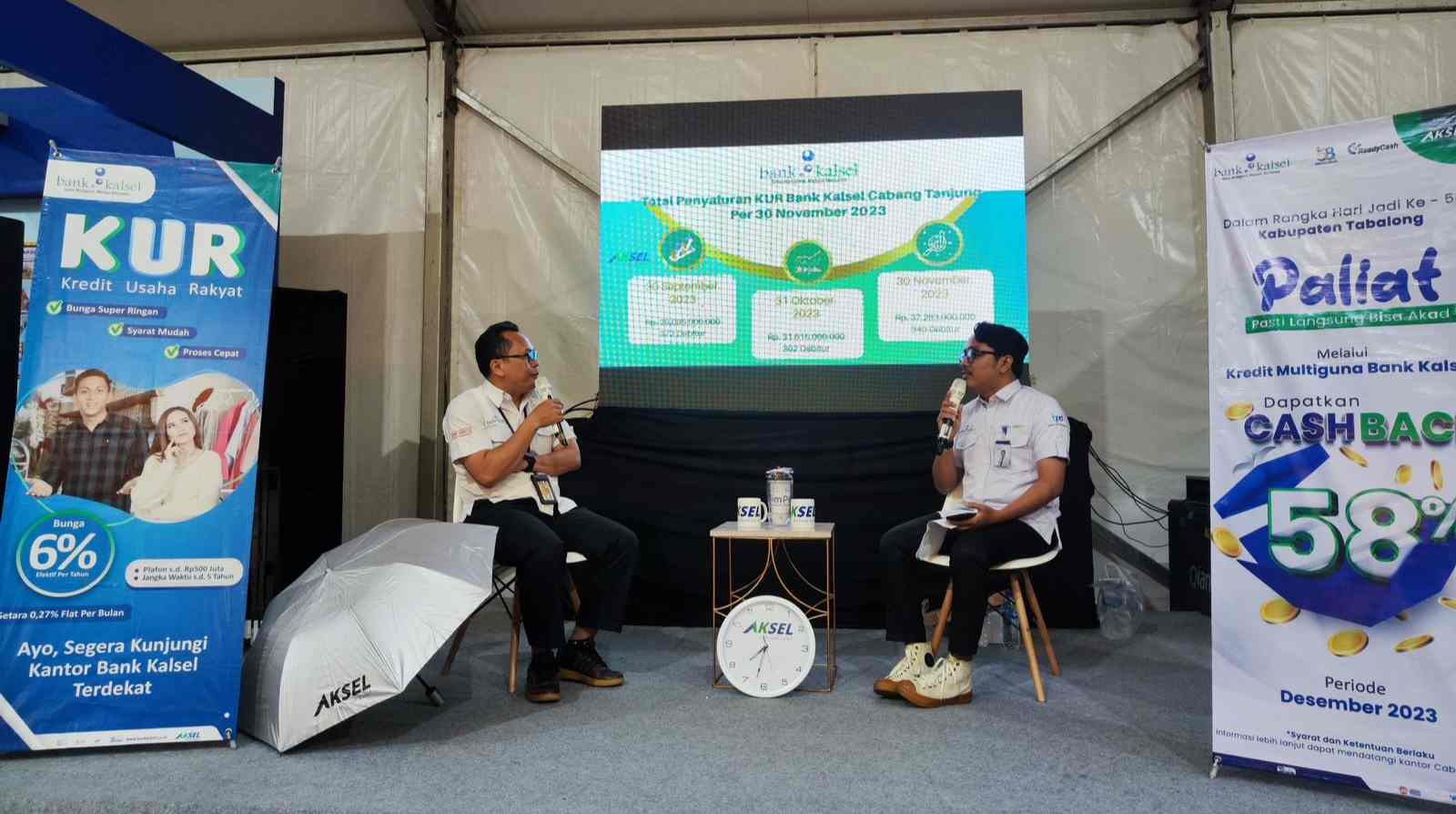 JURNALKALIMANTAN.COM, TABALONG– Bank Kalsel ikut mensukseskan berbagai program Pemerintah Kabupaten (Pemkab) yang dapat membantu promosi produk pelaku Usaha Mikro Kecil dan Menengah (UMKM), satunya belum lama tadi menjadi salah satu sponsor kegiatan Pekan Raya Tabalong 2023 yang dilaksanakan oleh Pemkab Tabalong mulai tanggal tanggal 7-13 Desember 2023, di Expo Center Mabuun, Kabupaten Tabalong, Provinsi Kalimantan Selatan (Kalsel).