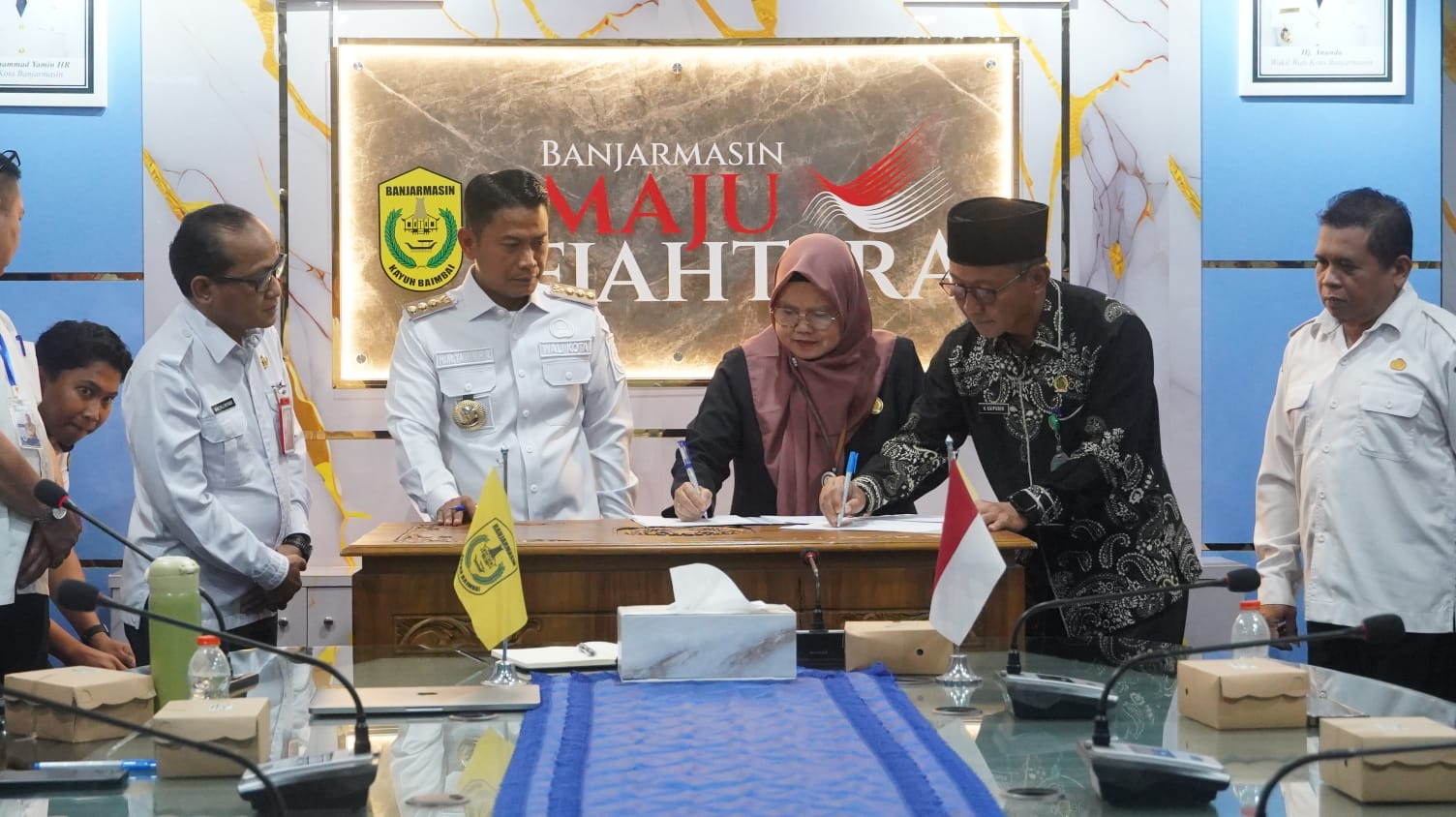 Penandatanganan dilakukan langsung Wali Kota H. M. Yamin HR, bersama Ketua PA Banjarmasin Hj. Norhayati, dan Kepala Kantor Kemenag H. Saipudin, di Ruang Rapat Wali Kota, Rabu (12/11/2025).