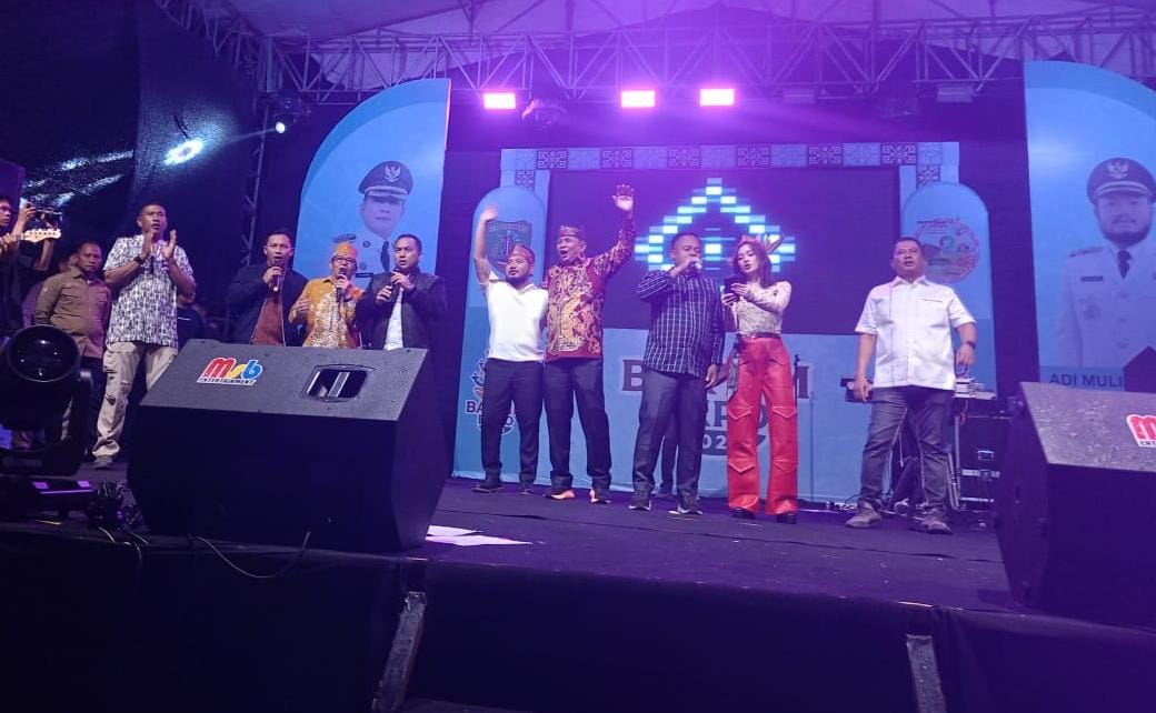 Bupati dan Wakil Bupati Bartim saat ikut serta naik panggung dalam penampilan artis ibu kota. (Foto : Ist)