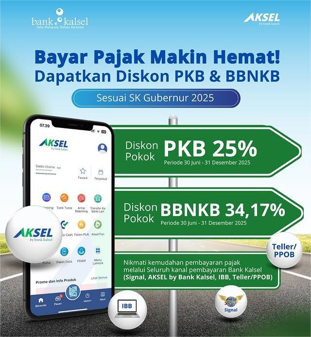 Kabar gembira bagi pemilik kendaraan, mulai 30 Juni hingga 31 Desember 2025, masyarakat bisa menikmati potongan pajak kendaraan bermotor sesuai Surat Keputusan Gubernur Kalimantan Selatan Tahun 2025 yang memberikan insentif pajak.