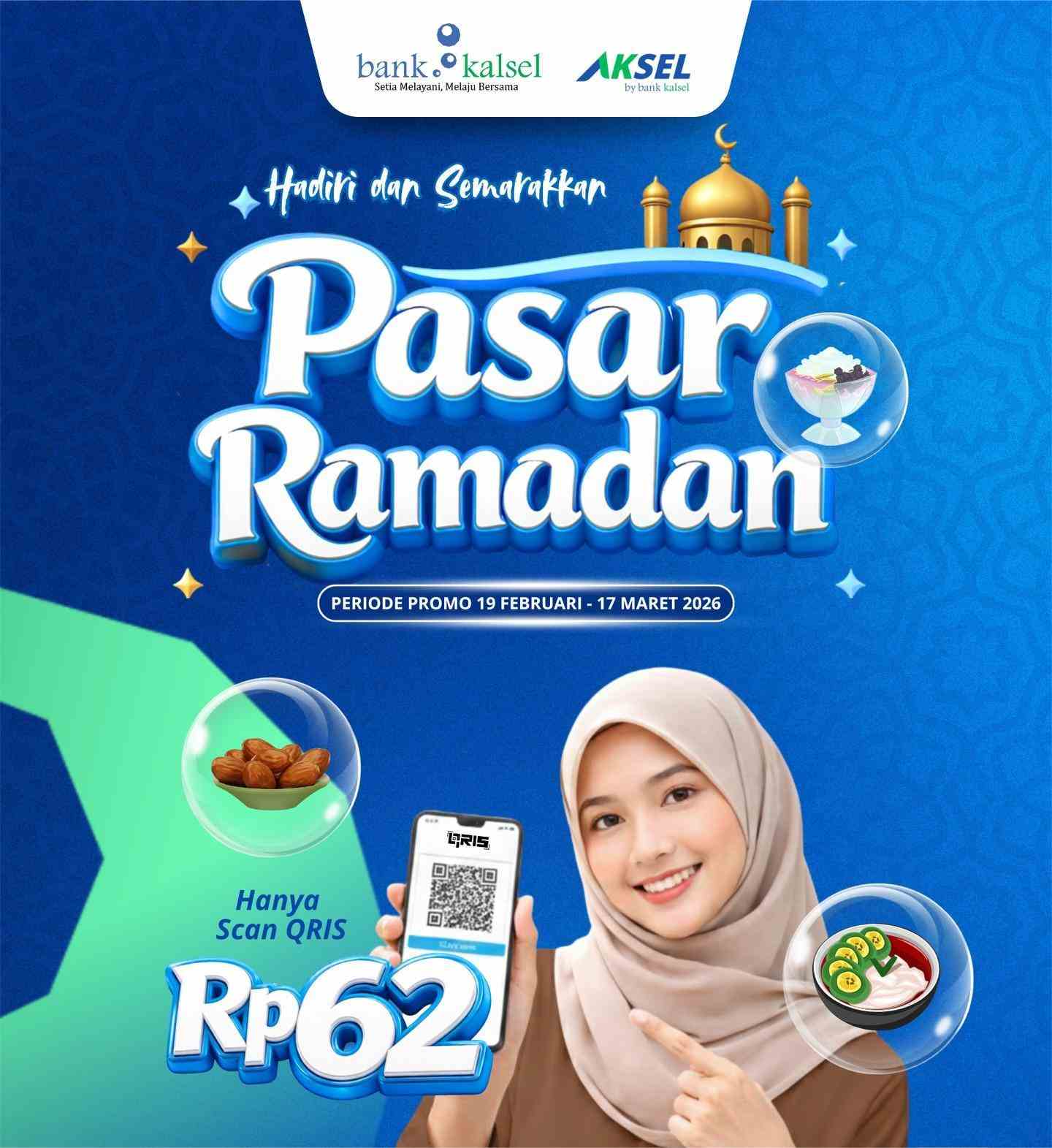 JURNALKALIMANTAN.COM, BANJARMASIN – Kabar gembira bagi masyarakat Banua! Bank Kalsel menghadirkan promo spektakuler di momen Ramadan tahun ini. Cukup dengan Rp62, masyarakat sudah bisa menikmati menu buka puasa favorit di Pasar Ramadan melalui aplikasi Aksel by Bank Kalsel.