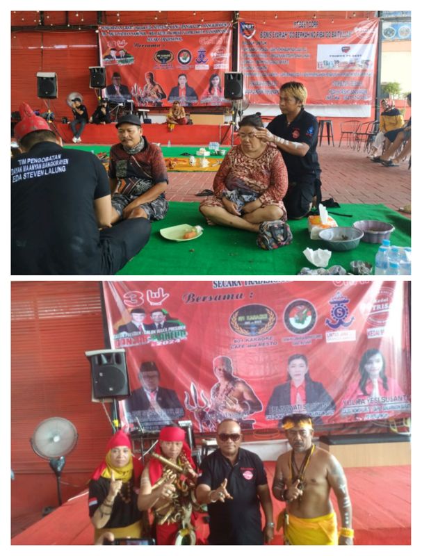 JURNALKALIMANTAN.COM, BANJARMASIN – Guna membantu masyarakat dalam berobat, Pemilik Kedai 99 Trisakti Saut Nathan Samosir bersama Caleg Banjarmasin Barat Yulita Yesi Susanti dan Erlinawati Sipayung dari Partai Demokrasi Indonesia Perjuangan (PDIP), kembali menggelar pengobatan tradisional menghadirkan Eda Steven Lalung Dayak Ma’ayan secara gratis, di Kedai 99 Trsakti, Jumat (1/12/2023).
