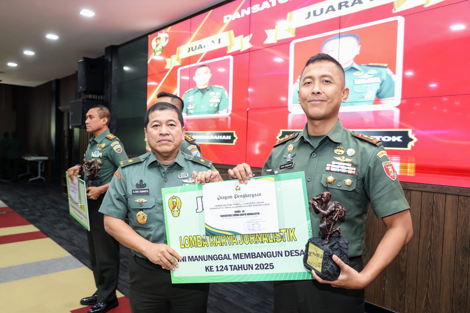 Kemudian, juara tiga lomba karya jurnalistik (LKJ) kategori Dansatgas yang juga didapat Dandim 1002/HST, Letkol Inf Fery Perbawa dengan jumlah nilai 11.525 poin.