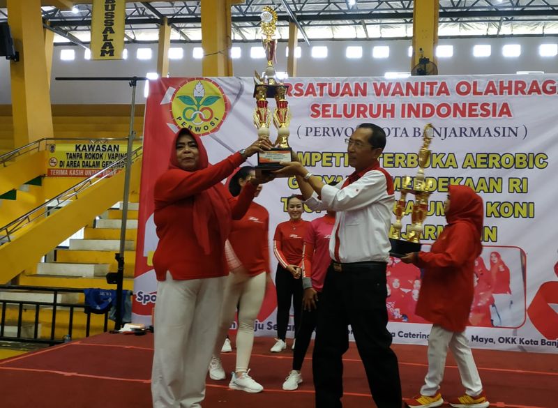 JURNALKALIMANTAN.COM, BANJARMASIN – Persatuan Wanita Olahraga Seluruh Indonesia (Perwosi) Kota Banjarmasin menggelar acara tahunan, yaitu kompetisi senam aerobik terbuka Gebyar Kemerdekaan Republik Indonesia, merebutkan piala Ketua Umum KONI Banjarmasin, berlangsung di GOR Hasanudin H.M., Sabtu (26/8/2023).