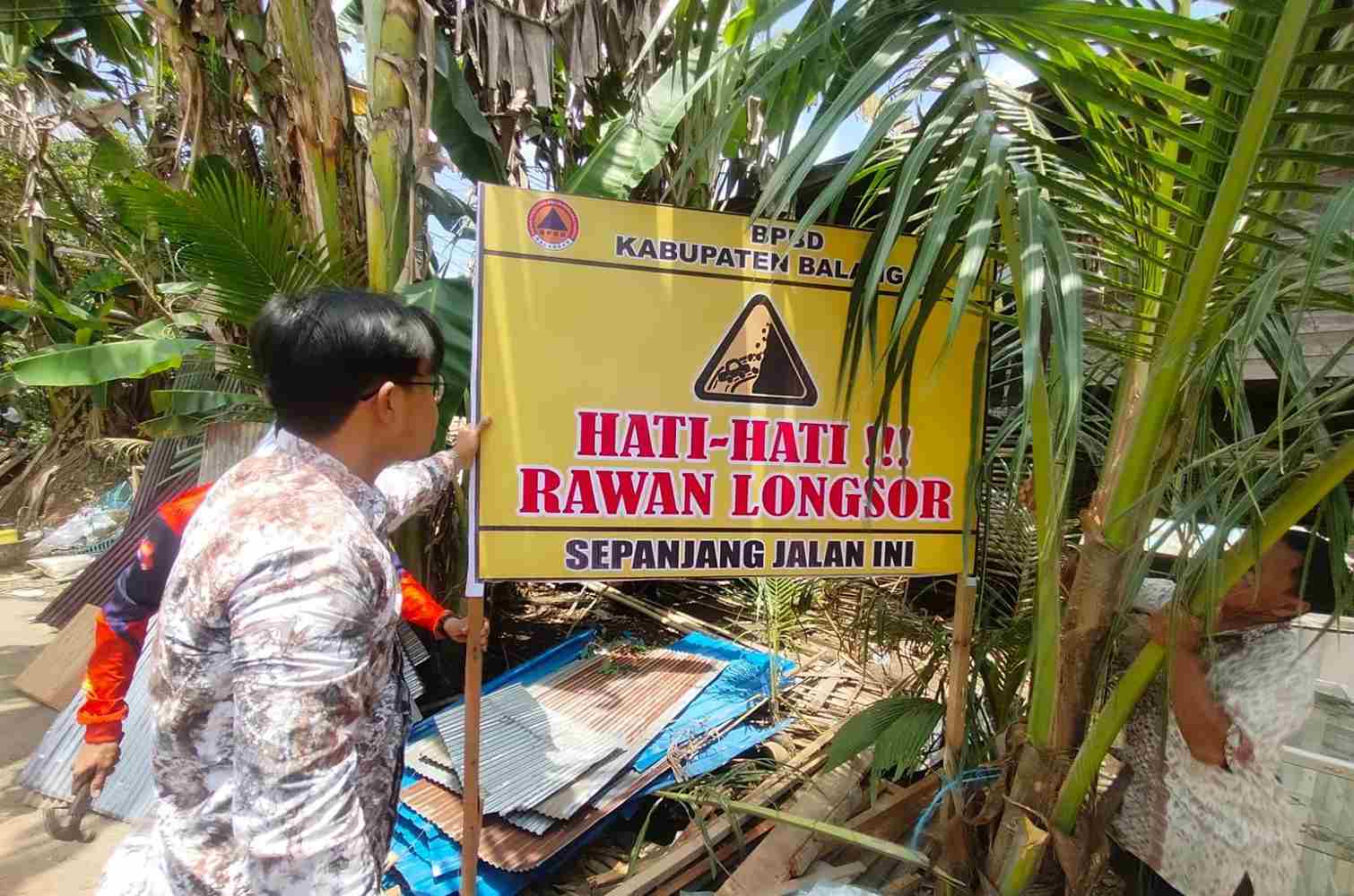 BPBD Balangan Lakukan Kajian dan Pasang Himbauan Tanah Amblas