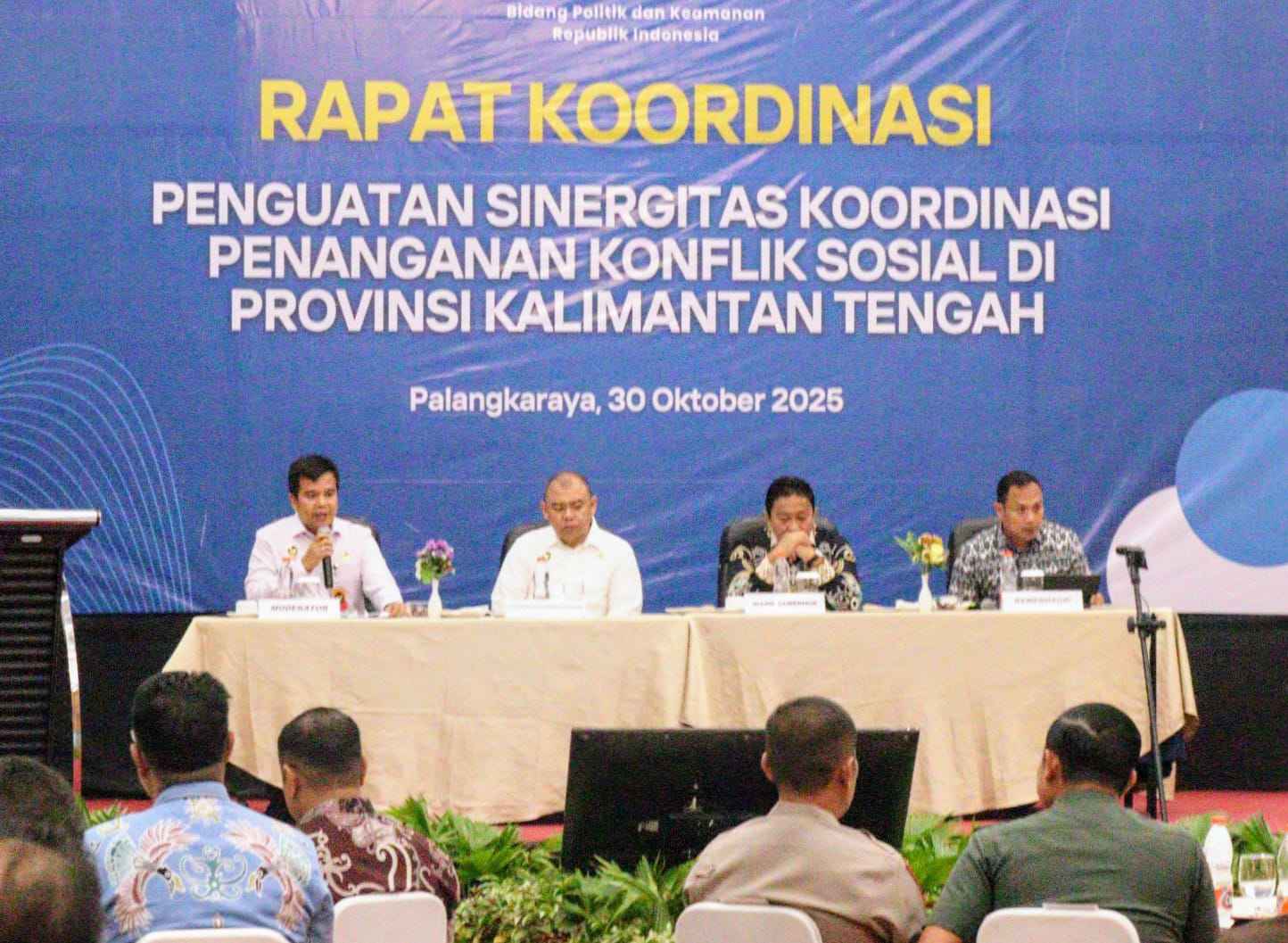 JURNALKALIMANTAN.COM, PALANGKARAYA – Bupati Pulang Pisau H. Ahmad Rifa’i menghadiri Rapat Koordinasi (Rakor) Penguatan Sinergitas Penanganan Konflik Sosial di Provinsi Kalimantan Tengah, yang diselenggarakan oleh Kementerian Koordinator Bidang Politik, Hukum, dan Keamanan Republik Indonesia (Kemenkopolhukam RI). Kegiatan tersebut berlangsung di Hotel Bahalap, Palangka Raya, pada Kamis (30/10/2025).