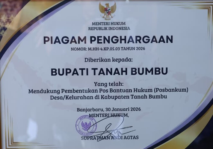 “Penghargaan dari pemerintah pusat ini diharapkan semakin memotivasi Tanah Bumbu untuk terus menghadirkan layanan hukum yang dekat, ramah, dan berpihak pada kebutuhan warga,” ujarnya.