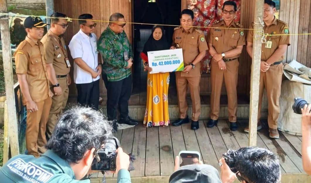 Kegiatan yang dimulai sejak pukul 08.00 WITA ini merupakan bentuk kepedulian Pemerintah Kabupaten Balangan bersama BPJS Ketenagakerjaan terhadap masyarakat yang mengalami musibah kehilangan anggota keluarga.