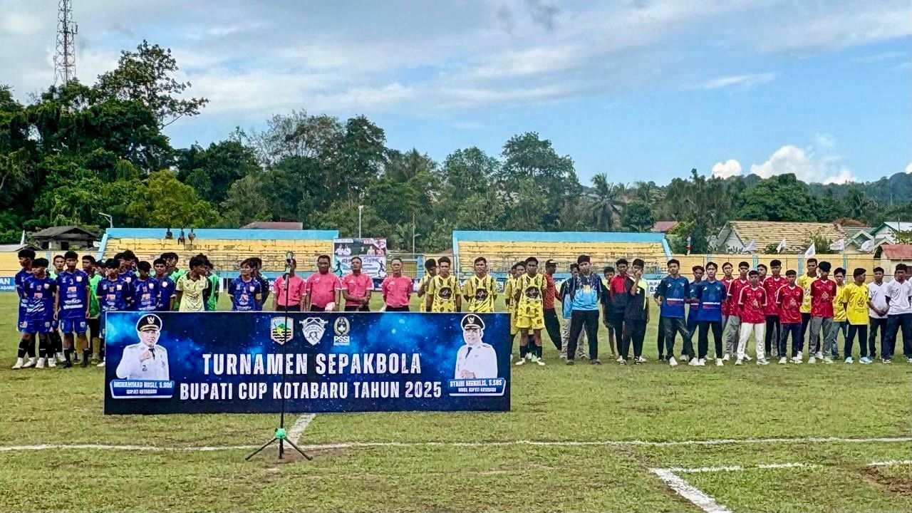 JURNALKALIMANTAN.COM, KOTABARU – Pemerintah Kabupaten Kotabaru resmi membuka Turnamen Sepak Bola Bupati Cup 2025 di Stadion Bamega, Rabu (20/8/2025). Ajang ini digelar sebagai upaya mengembangkan kualitas sekaligus menggali potensi atlet sepak bola di daerah.