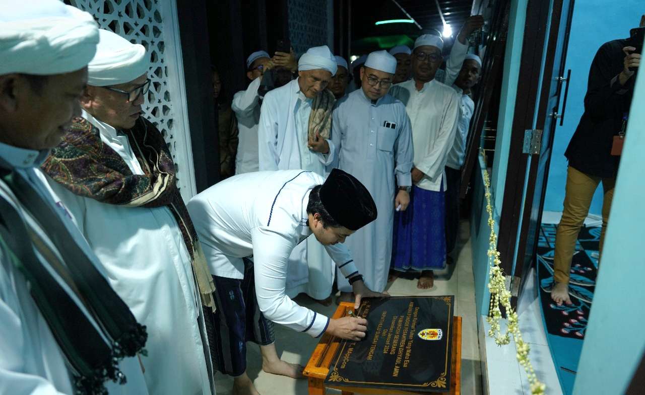 Bupati HST Aulia Oktafiandi menandatangani prasasti peresmian Asrama di Ponpes Dhiyaul Amin. (Foto: Prokom HST untuk Jurnal Kalimantan)