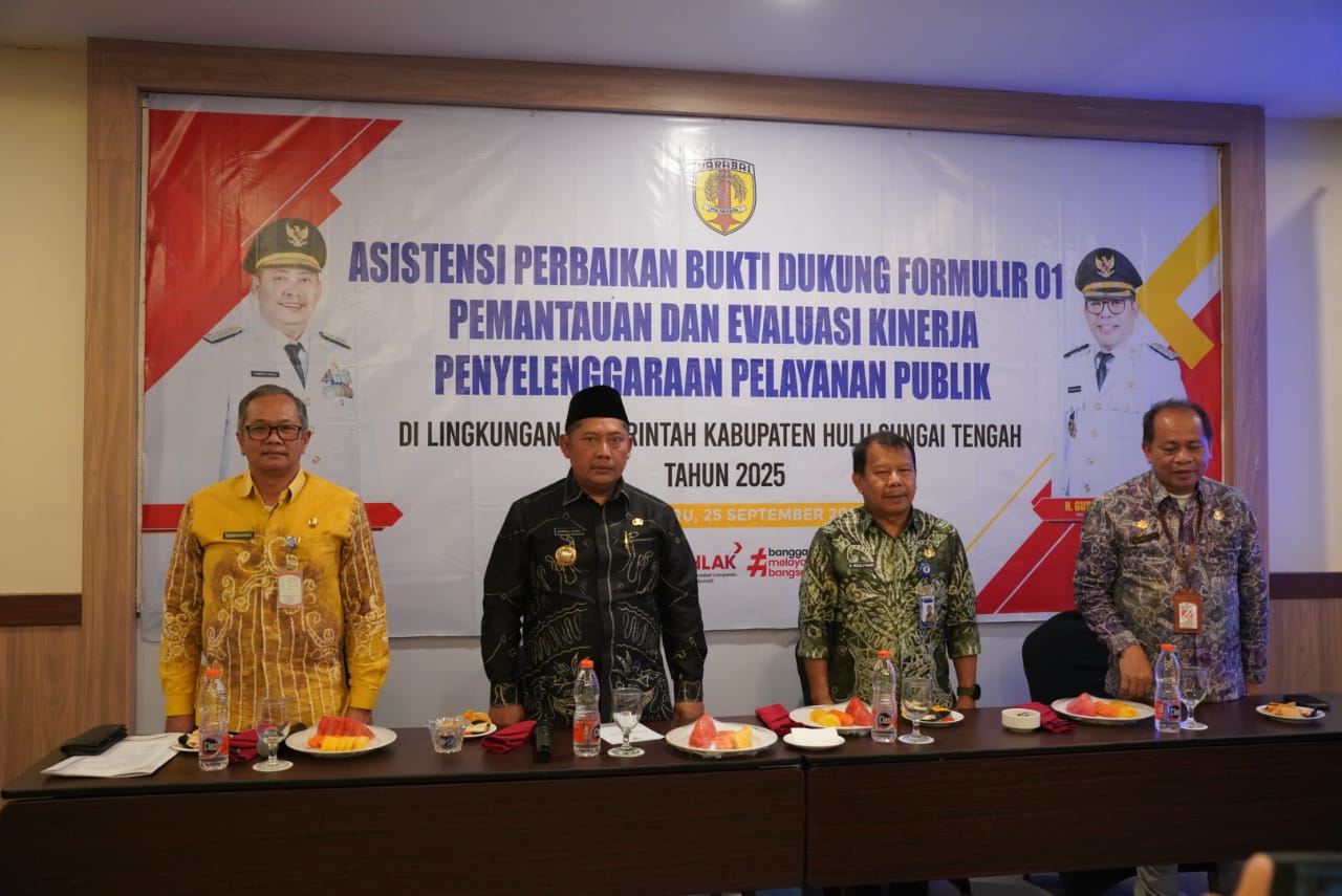 JURNALKALIMANTAN.COM, BANJARBARU – Pemerintah Kabupaten Hulu Sungai Tengah (HST) menggelar kegiatan Asistensi Perbaikan Bukti Dukung Formulir 01 Evaluasi Kinerja Penyelenggaraan Pelayanan Publik (PEKPPP) Tahun 2025 di Hotel Grand Qin, Banjarbaru, Kamis (25/9).