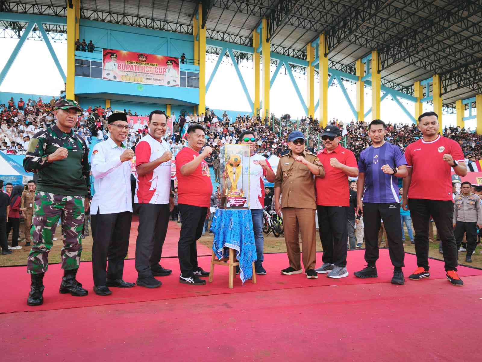 Bupati HST Samsul Rizal foto bersama dengan unsur forkopimda dalam partai final Bupati HST Cup 2025
