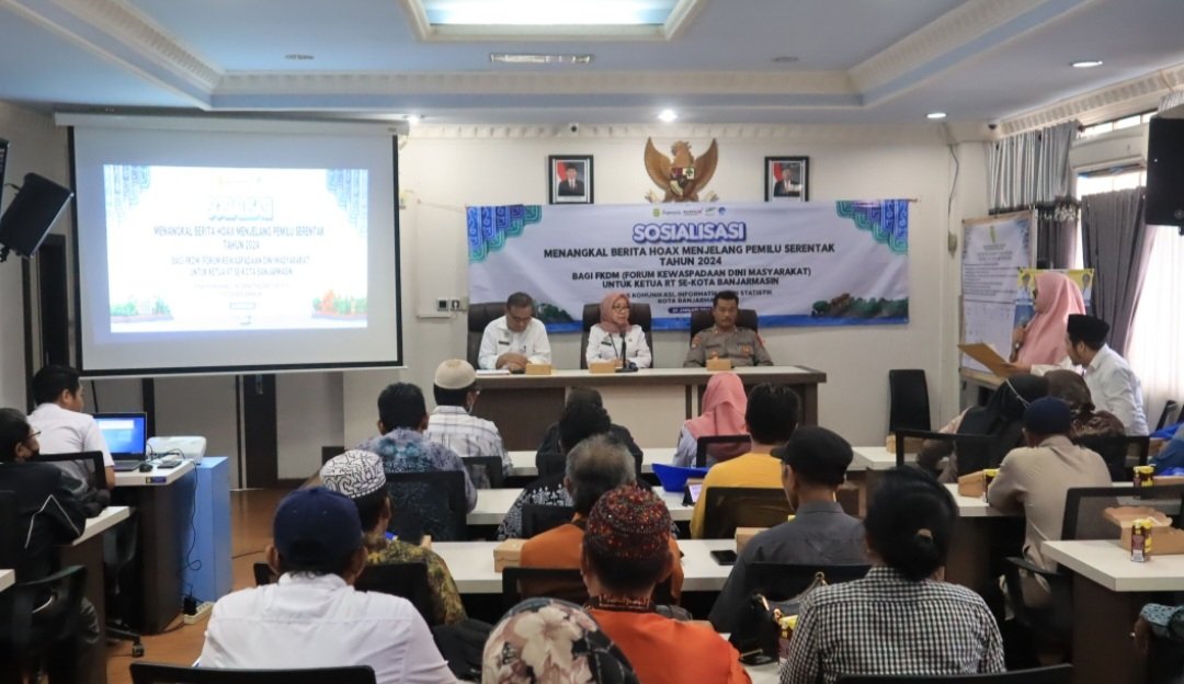 JURNALKALIMANTAN.COM,BANJARMASIN – Pemerintah Kota Banjarmasin melalui Dinas Komunikasi, Informatika, dan Statistik (Diskominfotik) menggelar sosialisasi “Menangkal Berita Hoaks Menjelang Pemilu Serentak Tahun 2024”, diikuti Forum Kewaspadaan Dini Masyarakat (FKDM) dari kalangan ketua RT se-Banjarmasin.