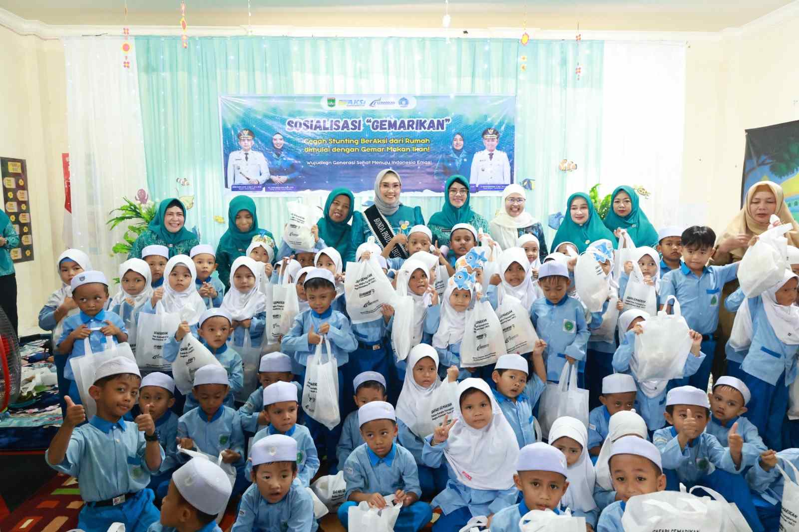 JURNALKALIMANTAN.COM, TANAH BUMBU — Pemerintah Kabupaten Tanah Bumbu (Pemkab Tanbu) terus menggalakkan gerakan gemar makan ikan sejak usia dini. Melalui kegiatan Sosialisasi Gerakan Makan Ikan untuk anak-anak Pendidikan Anak Usia Dini (PAUD), Pemkab Tanbu berupaya memperkuat gizi anak dan mencegah stunting. Kegiatan ini digelar di RA Darul Azhar, Desa Bersujud, Kecamatan Simpang Empat, belum lama tadi.
