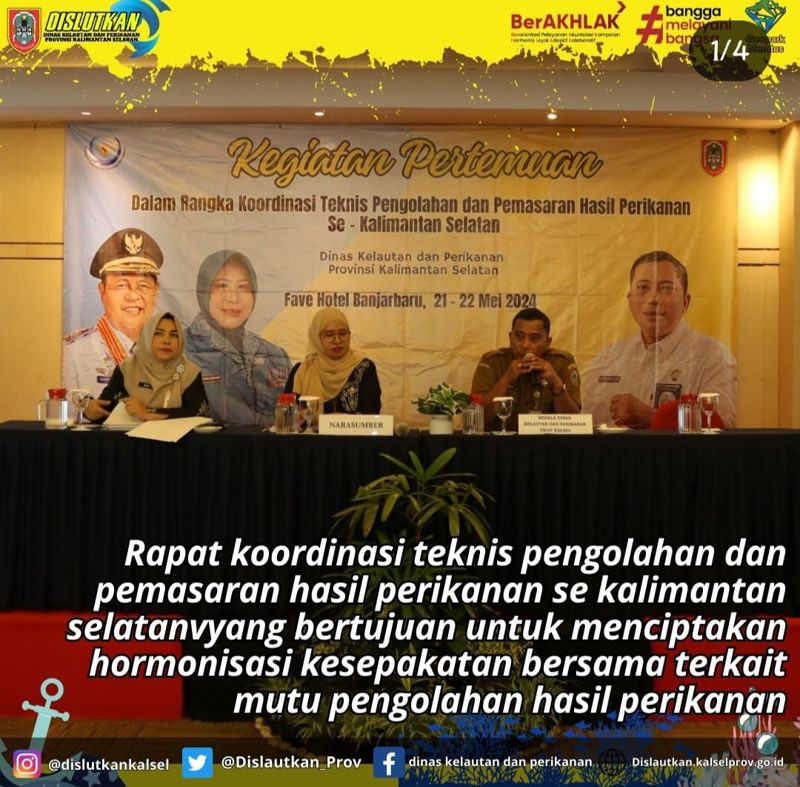 JURNALKALIMANTAN.COM, BANJARBARU – Dinas Kelautan dan Perikanan (Dislautkan) Provinsi Kalimantan Selatan (Kalsel), melaksanakan Rapat Koordinasi Teknis (Rakornis) Pengolahan dan Pemasaran Hasil Perikanan (PPHP) se-Kalimantan Selatan, Selasa (21/5/2024).