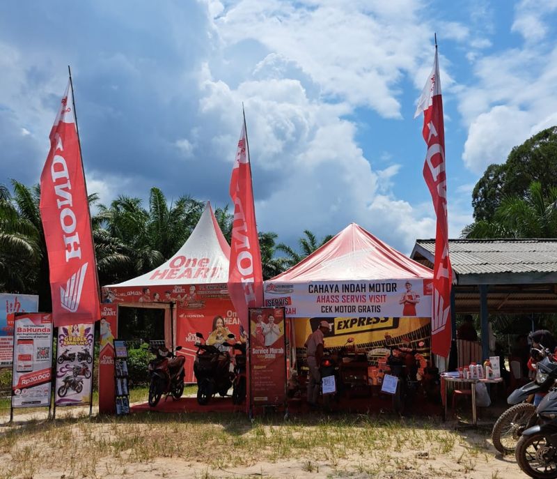 JURNALKALIMANTAN.COM, GUNUNG MAS – Jaringan Dealer Resmi Honda Cahaya Indah Motor adakan Gerebek Desa Fajar Harapan, Kecamatan Manuhing, Kabupaten Gunung Mas, Kalimantan Tengah, Sabtu (26/08/2023). Berbagai kemudahan ditawarkan khusus untuk masyarakat di perkebunan PT Mulia Sawit Agro Lestari (MSAL), yang terletak di desa tersebut.