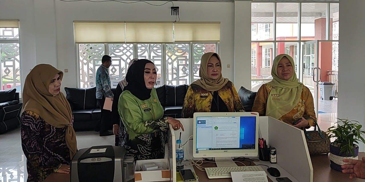 Kadispersip Kalsel (tengah kiri) saat membawa tamunya di perpustakaan Palnam