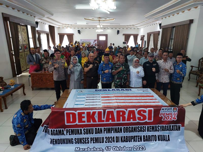 Sekda Batola menyampaikan, melalui deklarasi ini dapat menyatukan tekad bersama, antara Pemerintah dan seluruh elemen masyarakat, utamanya bagi tokoh agama, pemuka suku, dan pimpinan ormas untuk mewujudkan pemilu yang aman dan damai.