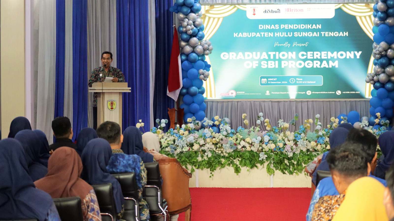 JURNALKALIMANTAN.COM, HULU SUNGAI TENGAH – Pemerintah Kabupaten Hulu Sungai Tengah (HST) melalui Dinas Pendidikan (Disdik), gelar Graduation Ceremony of SBI Program atau Seremonial Kelulusan Program Sekolah Berbahasa Inggris. Agenda ini digelar di Pendopo Bupati HST, Jum’at (13/12/2024) siang.
