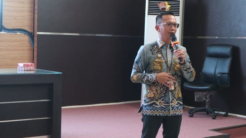 Kasi Layanan Informasi Publik Dinas Komunikasi dan Informatika Provinsi Kalsel Muhammad Ayubkhan, menyampaikan materi Rakor PPID yang memuat langkah penyusunan Daftar Informasi Publik (DIP), tata kelola PPID Pelaksana, dan pembentukan PPID perangkat daerah.