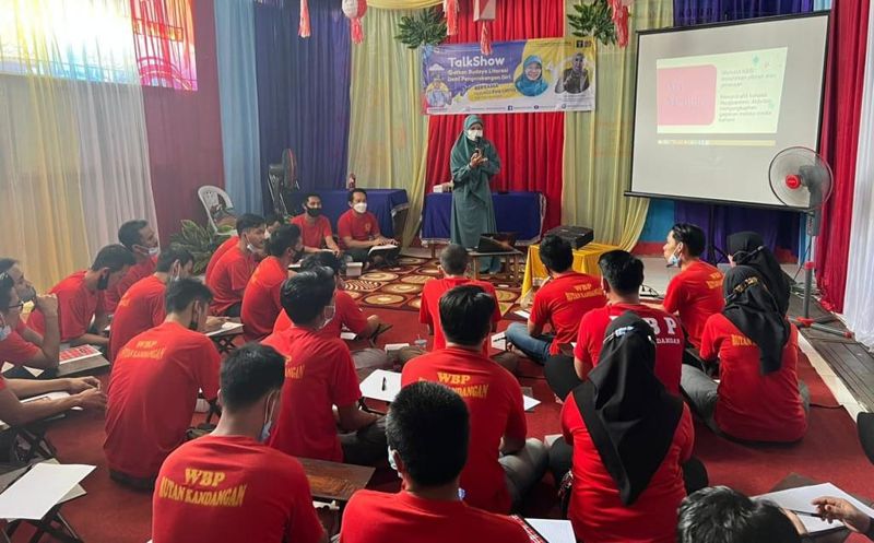 Kegiatan ini dibungkus dengan gelar wicara yang dihadiri puluhan warga binaan, bersama narasumber penulis Efa Liana.