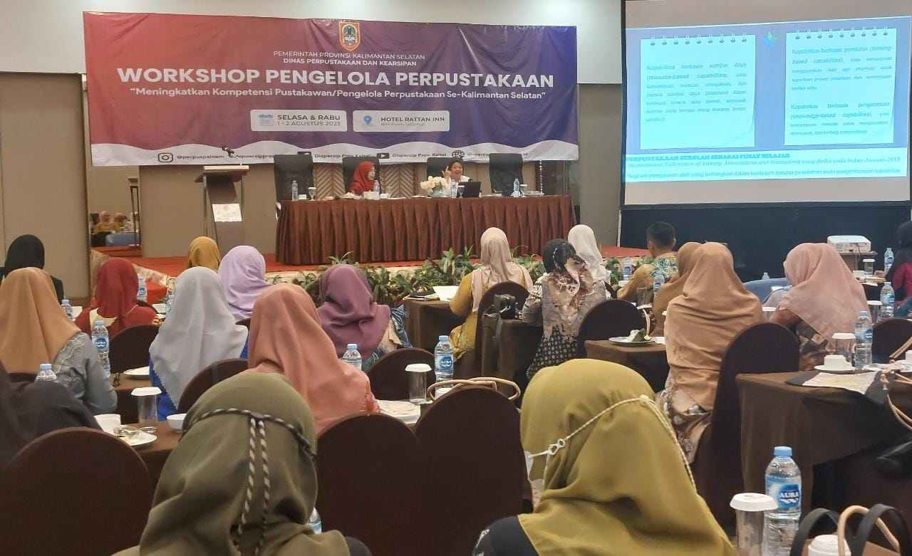 Diikuti ratusan pengelola perpustakaan dan pustakawan dari 13 kabupaten/kota se-Kalsel, kegiatan ini dibuka Kepala Dispersip Kalsel Hj. Nurliani Dardie, yang menghadirkan narasumber dari Perpustakaan Nasional Rebublik Indonesia Dra. Woro Titi Haryanti, M.A., yang merupakan Pustakawan Ahli Utama.