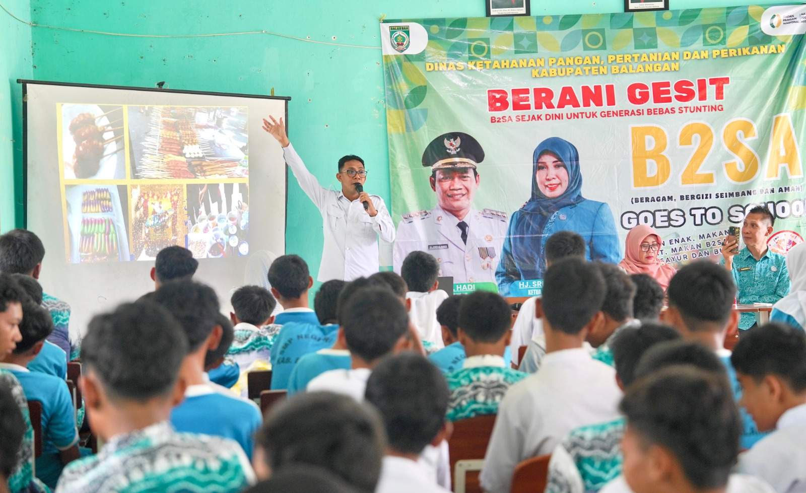 JURNALKALIMANTAN.COM, BALANGAN – Dinas Ketahanan Pangan, Pertanian dan Perikanan (DKP3) Kabupaten Balangan terus menggencarkan edukasi gizi sehat bagi pelajar. Melalui program B2SA (Beragam, Bergizi, Seimbang, dan Aman) Goes To School, DKP3 memberikan sosialisasi di SMP Negeri 1 Juai, Desa Mungkur Uyam, Kecamatan Juai, belum lama ini.