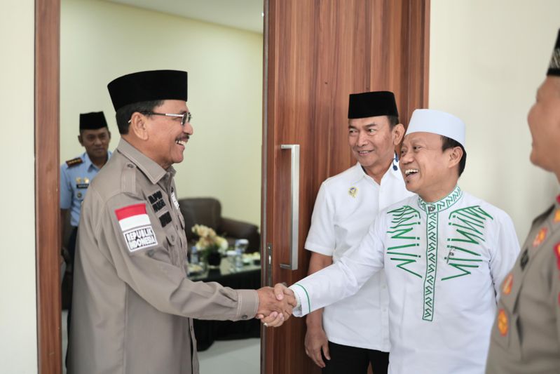 Ketua DPRD Kalsel Supian HK berjabat tangan dengan Das’ad Latif saat doa bersama dengan Polda Kalsel (Foto: hmsdprdklasel)