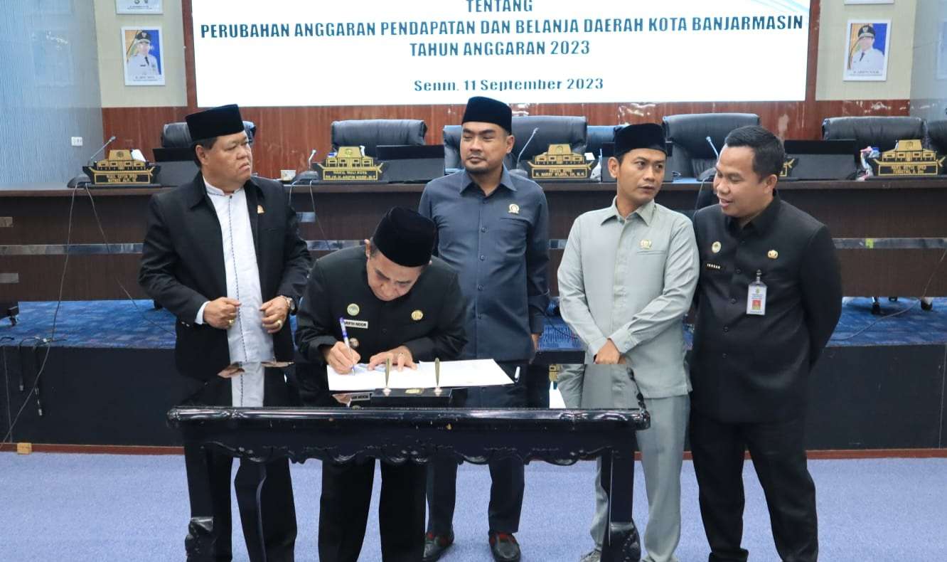 Pengesahan Perubahan APBD 2023 ini, ditandatangani Ketua DPRD Banjarmasin Harry Wijaya didampingi Wakil Ketua HM Yamin, Matnor Ali, Tugiatno dan Wakil Walikota Banjarmasin Arifin Noor.