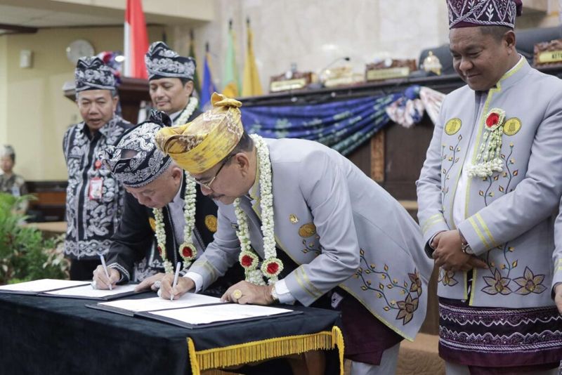 Penandatanganan tersebut dilakukan langsung oleh Gubernur Kalsel, H. Muhidin, bersama jajaran Pimpinan DPRD Kalsel, disaksikan para anggota dewan, kepala daerah kabupaten/kota, perwakilan Forkopimda, serta tamu undangan.