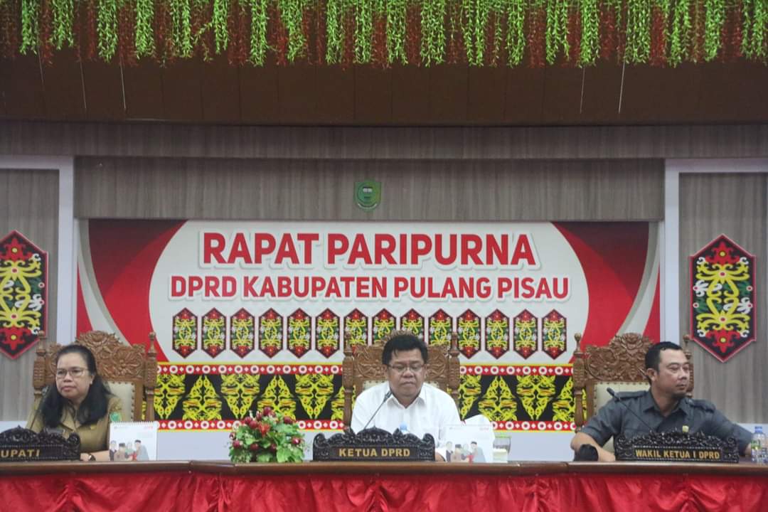 Rapat Paripurna dilaksanakan di Gedung DPRD Pulang Pisau, yang dipimpin oleh Wakil Ketua l H Ahmad Fadli Rahman, didampingi Waket II Sentot Siswanto, dan dari pihak eksekutif dihadiri Asisten III, Andriani serta OPD dilingkup Pemkab Pulang Pisau, Senin (22/04/2024).