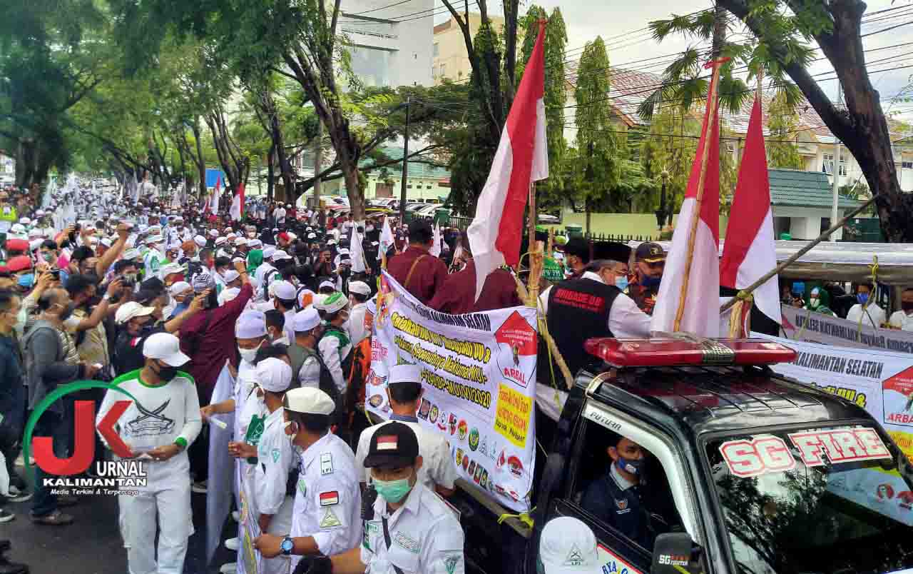 JURNALKALIMANTAN.COM, BANJARMASIN – Ratusan warga berunjuk rasa menolak Rancangan Undang-undang Haluan Ideologi Pancasila (RUU HIP).