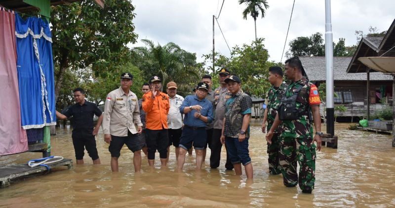 Pj Bupati Kapuas Erlin Hardi didampingi Pj Ketua TP PKK Kapuas Agustina Erlin Hardi meninjau langsung dan menyerahkan bantuan kepada masyarakat yang terkena musibah banjir diwilayah tersebut.