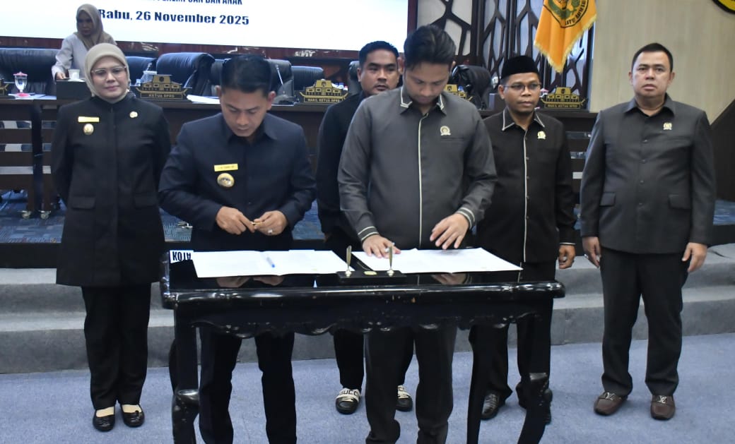 Hal itu terlihat melalui penandatanganan persetujuan bersama antara Wali Kota H. Muhammad Yamin HR dan Ketua DPRD Rikval Fachruri dalam Rapat Paripurna, di ruang rapat paripurna Gedung sekretariat DPRD, Rabu (26/11/2025).