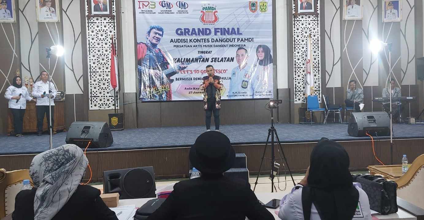 JURNALKALIMANTAN.COM, BANJARMASIN – Dewan Pimpinan Daerah (DPD) Persatuan Artis Musik Dangdut Indonesia (PAMDI) Kalimantan Selatan, menggelar Grand Final Audisi Kontes Dangdut yang berlangsung meriah, di Aula Kayuh Baimbai Balai Kota Banjarmasin, Sabtu (27/1/24).