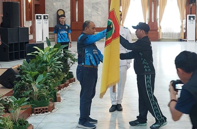 Pelepasan berlangsung khidmat di Gedung Mahligai Pancasila Banjarmasin, Jumat (31/10/2025), ditandai dengan penyerahan bendera Provinsi Kalimantan Selatan kepada ketua kontingen. Momen ini menjadi simbol semangat, sportivitas, dan tanggung jawab atlet muda Banua untuk mengharumkan nama daerah di tingkat nasional.