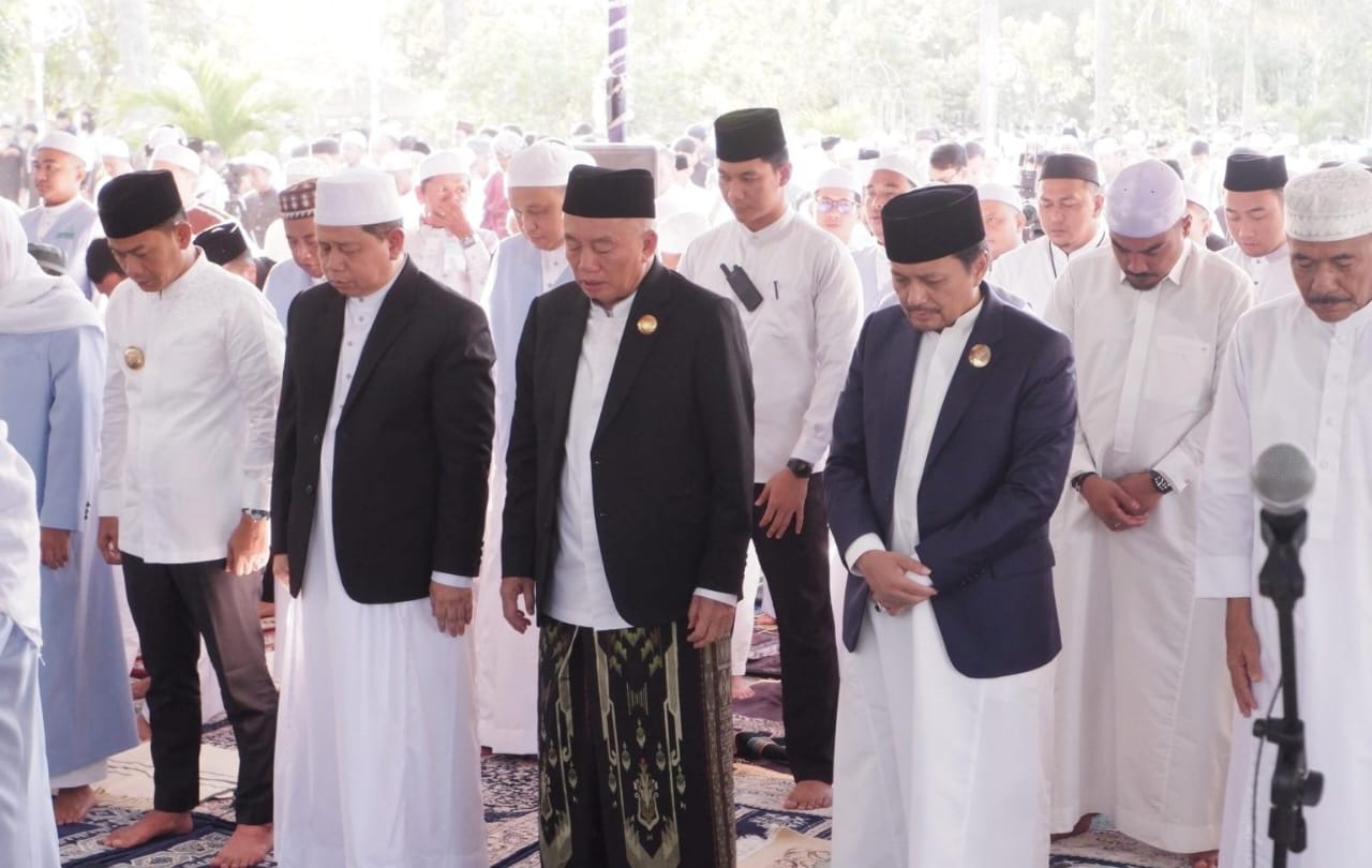 JURNALKALIMANTAN.COM, BANJARMASIN – Hari Raya Idul Adha 1446 Hijriah, Gubernur Kalimantan Selatan H. Muhidin dan Wakilnya H. Hasnuryadi Sulaiman, melaksanakan Salat Idul Adha di lapangan Masjid Raya Sabilal Muhtadin Banjarmasin, Jum’at (6/6/2025).