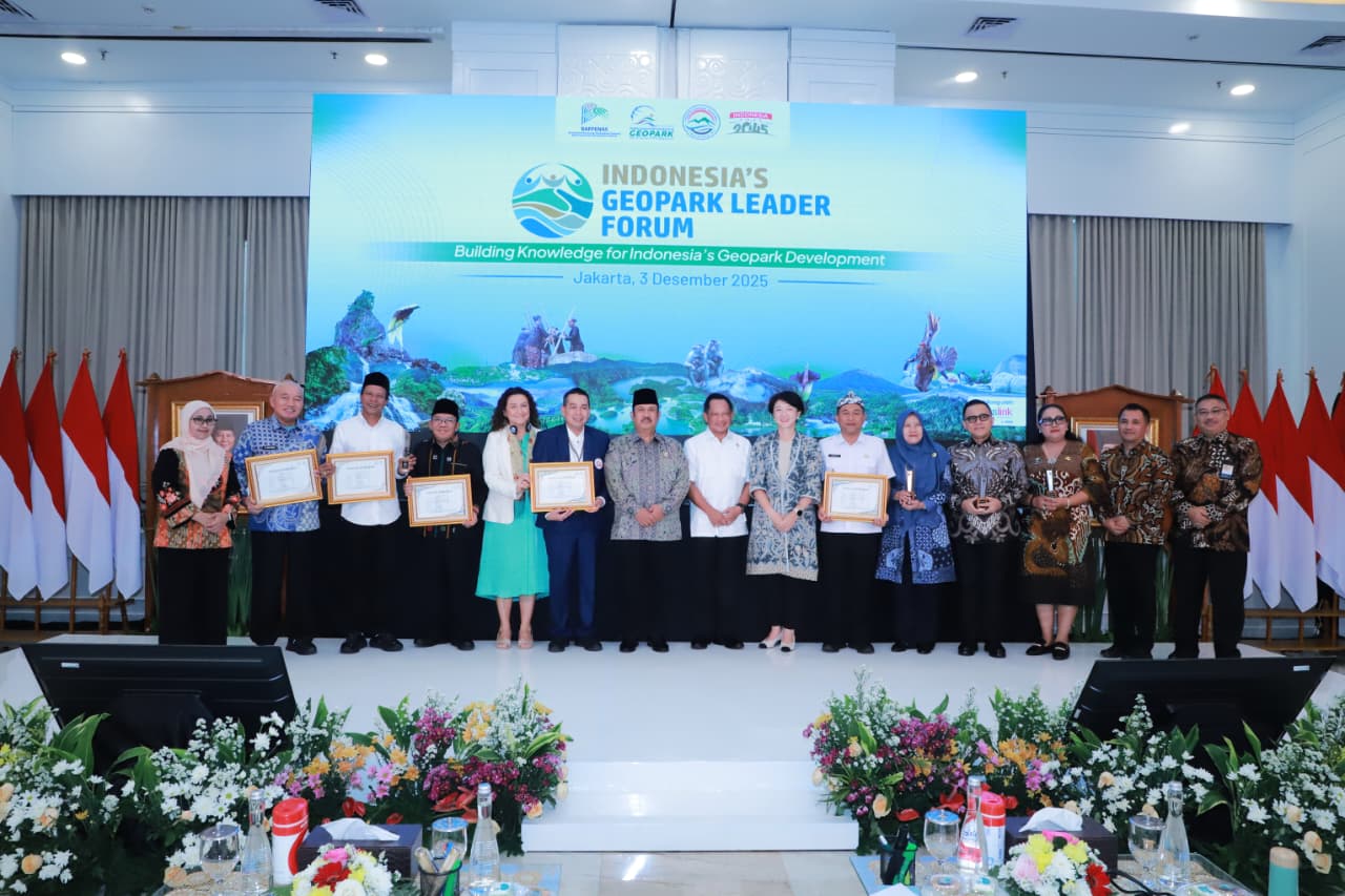 JURNALKALIMANTAN.COM, JAKARTA – Gubernur Kalimantan Selatan, H. Muhidin, menerima piagam apresiasi dan trofi penghargaan atas keberhasilan Geopark Meratus meraih status UNESCO Global Geopark (UGGp). Penghargaan tersebut diserahkan dalam acara Indonesia’s Geopark Leader Forum di Ruang Rapat Kementerian PPN/Bappenas RI, Jakarta, Rabu (3/12/2025).