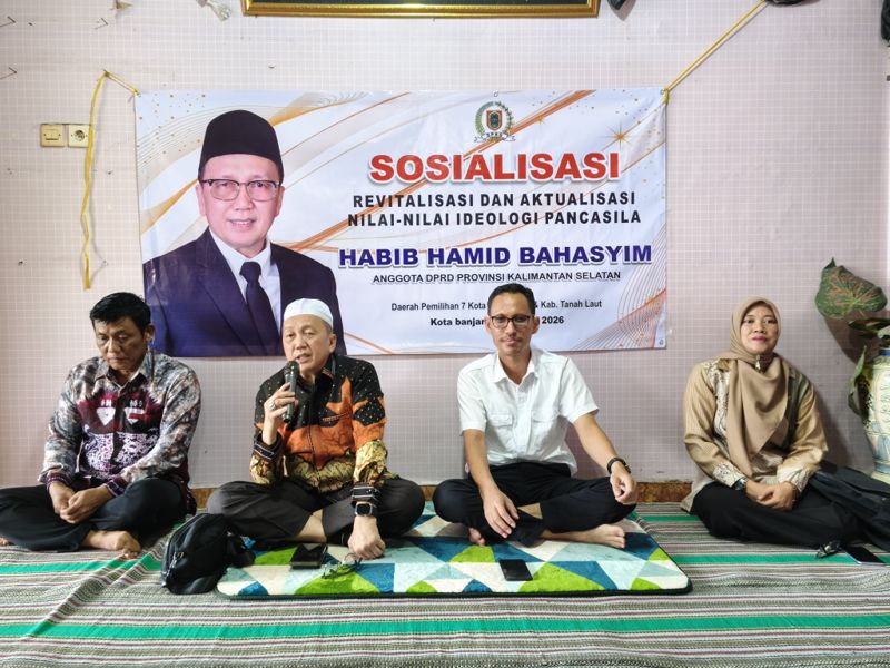 JURNALKALIMANTAN.COM, BANJARBARU – Wakil Ketua Komisi I DPRD Provinsi Kalimantan Selatan, Habib Hamid Bahasyim, menggelar sosialisasi revitalisasi dan aktualisasi nilai-nilai ideologi Pancasila di kawasan Guntung Manggis, Kecamatan Landasan Ulin, Banjarbaru, Senin (16/3/2026).