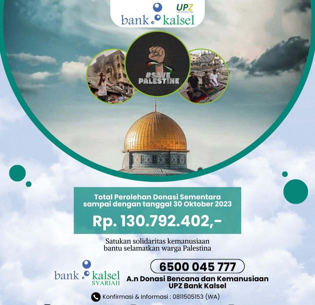 “Mari satukan solidaritas kemanusiaan untuk membantu saudara kita di Palestina dengan berdonasi melalui UPZ Bank Kalsel, ”tertulis dilaman Instagram UPZ Bank Kalsel, Senin (30/10/2023)